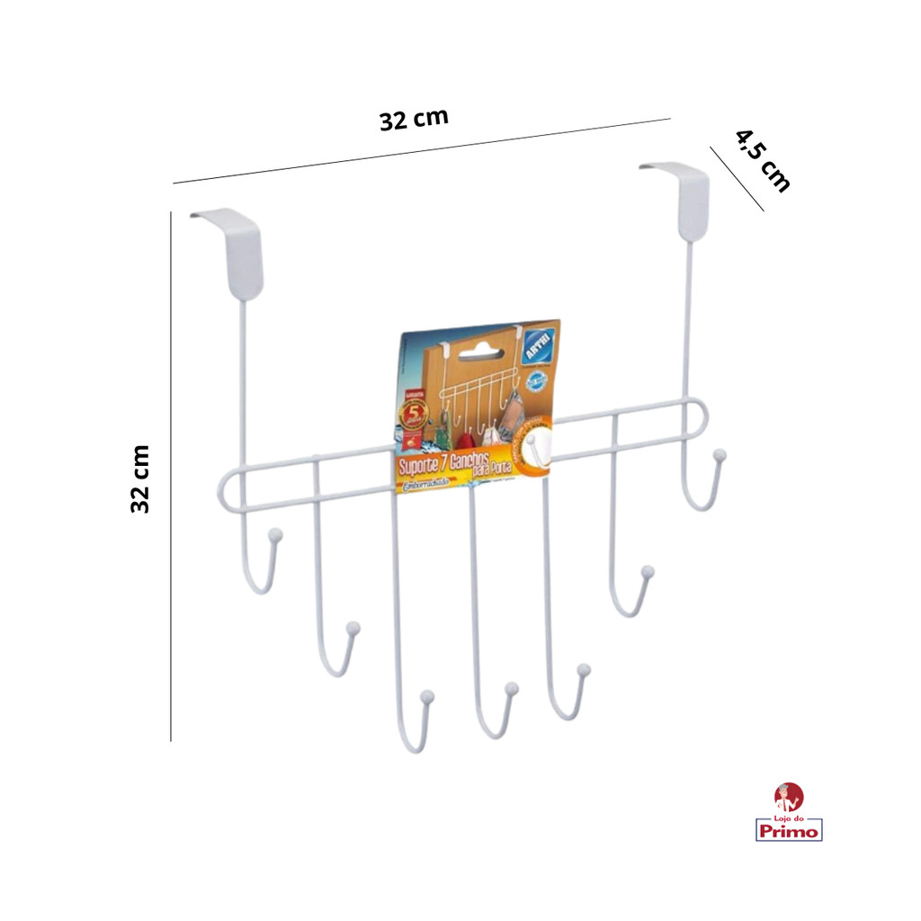 Cabide De Porta Pendurar Gancho Roupas Calça Toalha Multiuso 7 Ganchos Branco Arthi
