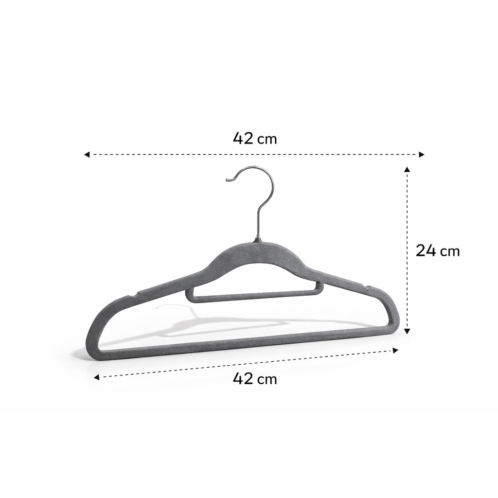 Cabide de Veludo Adulto com Gravateiro Cinza – 42cm Kit com 50 unidades ** Qualidade Premium: Resistentes ** Cabide de veludo Slim Cinza com barra ideal para ter um suporte na hora da organização. Esse modelo pode ser utilizado em qualquer tipo de roupa. Antideslizante, design elegante, modelo ultrafino e otimiza seu espaço! Seu revestimento de veludo é antiderrapante e mantém todas as peças firmes no lugar, evitando que escorreguem do cabide na hora do manuseio. Esse feltro macio ajuda a proteger roupas delicadas, também possui uma leve curvatura nos ombros para acomodar peças de alça fina. Sua barra inferior permite pendurar além das calças, também presilhas de veludo, organizando itens sem alça s como saias e shorts. Especificações: Ultra-finos: 42x24cm Gancho giratório 360º Mais resistentes e leves Não causam atrito nas roupas Não escorregam Suportam até 5kg Cabide de plástico, revestido de veludo e gancho de metal giratório, permite você girar sem precisar tirar a roupa para organizar. É um cabide leve e delicado, padronize e otimize espaço em seu armário. Por ser revestido de veludo, as roupas não escorregam do cabide. Composição: 80% plástico, 12% nylon, 2% aço.