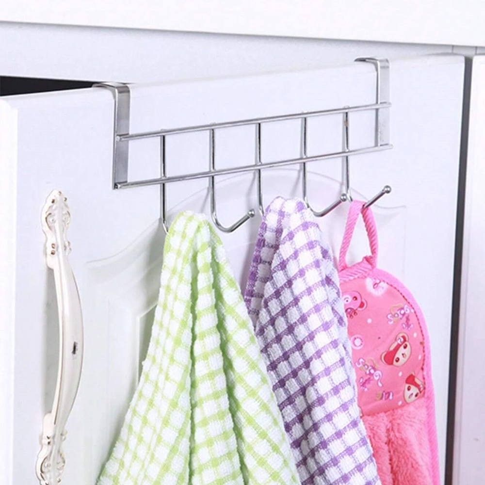 Cabide Gancho para Portas de Inox com 5 Ganchos Multiuso