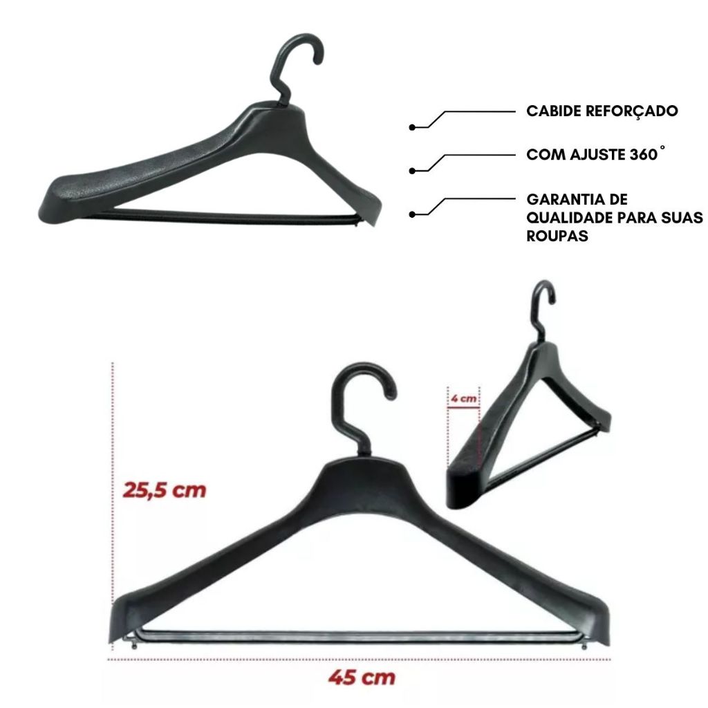 Cabide Kit 10 Unidades Utilitário Camisas, Calças, Coletes, Terno - Gancho Giratório 360 Resistente