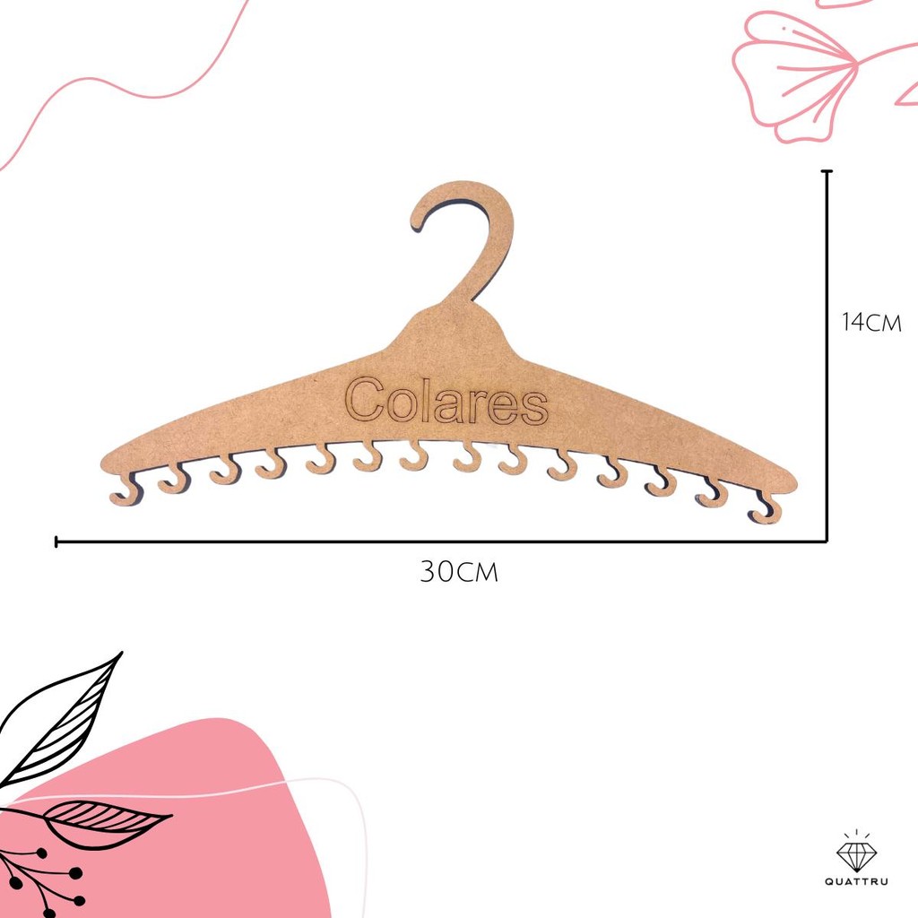 Porta Colares Cabide em MDF 30cm Moderno , prático , encantador para o dia a dia de uma mulher moderna, estilosa que não pode perder seu tempo procurando seus acessórios , além de prático serve como decoração ! Cabe muiiiita coisa , tudo bonitinho e arrumadinho , cada coisa no seu lugar e fácil de achar. Não deixe de ter o seu! Produto Novo de Fabricação Própria (QUATTRU) Medidas Aproximadas Comprimento: 30 cm Altura: 14 cm Largura: 6 mm