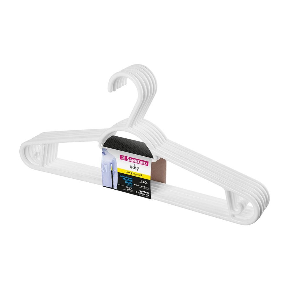 Cabide Plástico Adulto Pendura Mais Branco 40cm Easy Sanremo Leve 6 Pague 5