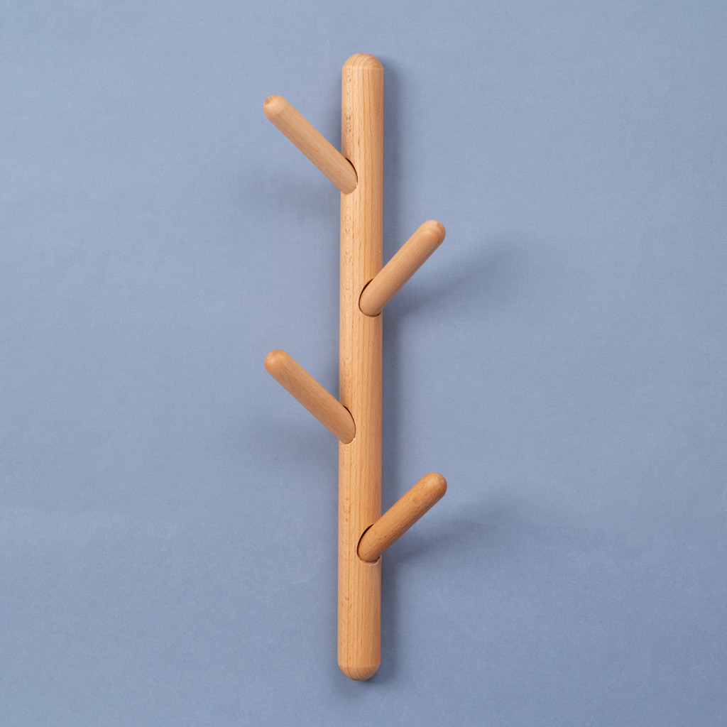 cabideiro de madeira para parede vertical 4 pinos - Oikos