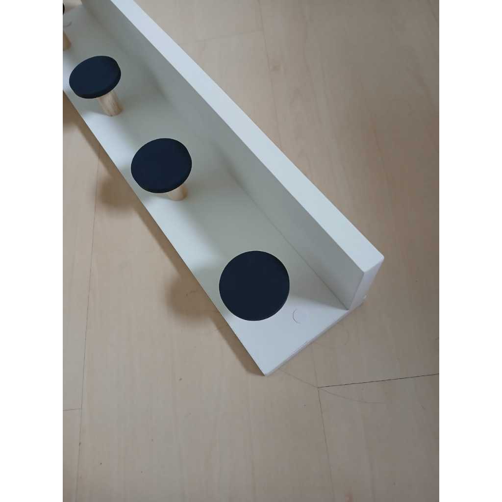 Organize com elegância e sofisticação com Cabideiro e Pendurador Infantil com prateleira 4 pinos cor azul marinho. O cabideiro decora e ao mesmo tempo traz maior organização ao pendurar o que quiser e ainda decorar com uma prateleira em cima. O acabamento deste produto é especial e feito artesanalmente com todo carinho. Os 4 pinos redondos são pintados na cor azul marinho. PERSONALIZAMOS NA COR ESCOLHIDA Material: MDF 15mm acabamento fosco branco Dimensões: 50cm larg 10cm alt 10cm prof * acompanha buchas, parafusos para instalação * acompanha tapa-furo para um acabamento perfeito.