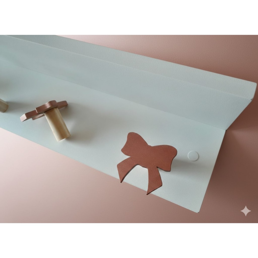 Cabideiro e Pendurador Infantil com prateleira 4 pinos laço rosê gold