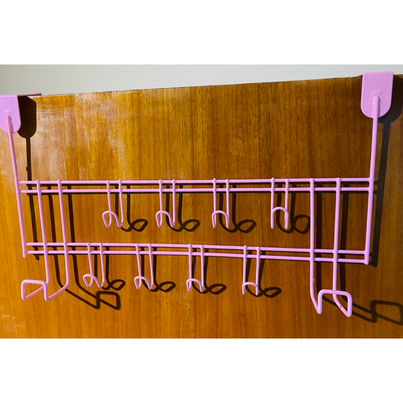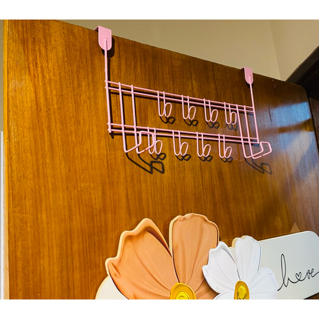 Cabideiro para por em cima de porta ou grades com 10 ganchos reforçado em inox e uma camada emborrachada. Que proporciona um acabamento lindo e suave . Suas medidas são de 28 cm de comprimento, 22 cm largura. Disponível nas cores lindas e vibrantes Rosa verde água azul claro lilás