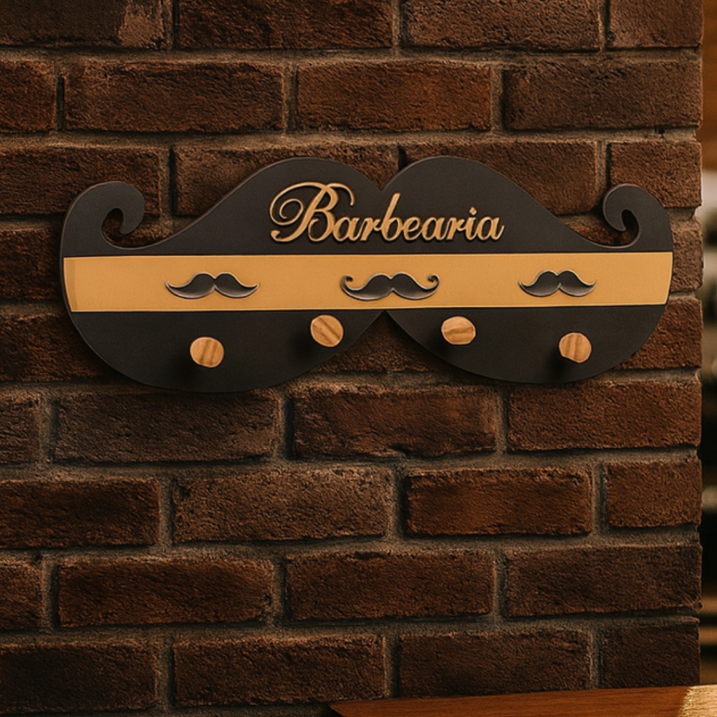 Cabideiro para Capas de Corte de Barbearias Modelo Bigode em MDF