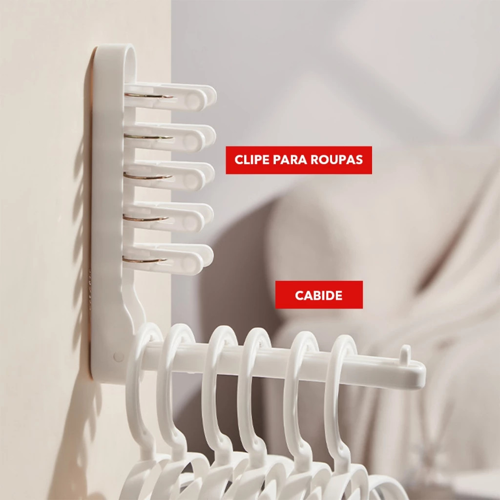 Cabideiro Portátil, Sem Furo, Dobrável para Viagem - Suporta Múltiplos Cabides, Organizador de Roupas