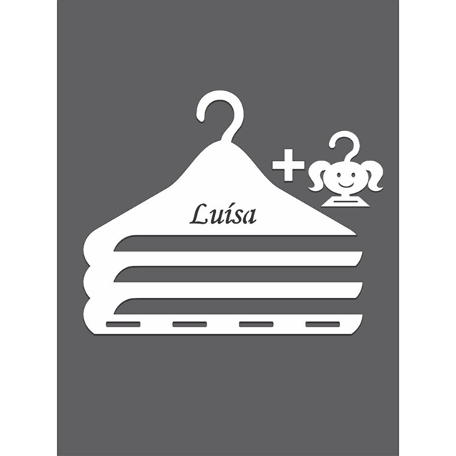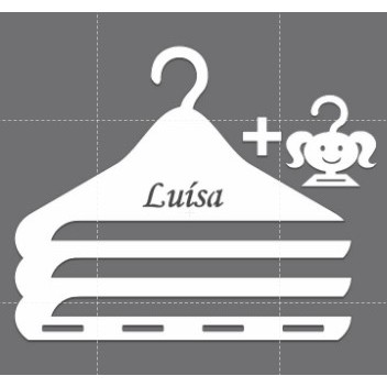 **** APÓS A COMPRA FAVOR INFORMAR O NOME A SER COLOCADO **** cabide grande mais um mini cabide modelo menininha em mdf de 3mm cortado no laser , ótimo acabamento , para outros modelos consulte nos . o cabide grande tem 33cm de comprimento por 29cm de altura os espaços da para fita numero 9 o mini cabide da menininha tem uma media de 12 cm