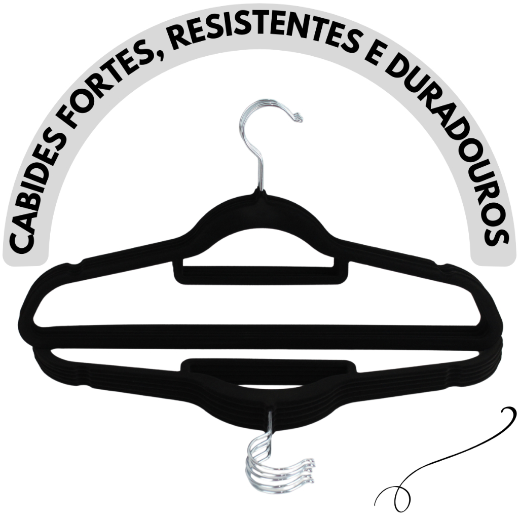 Cabides Reforçados de Veludo Slim Adulto Antideslizante Ultrafino Preto Com 30un Economia De Espaço CSCABIDES