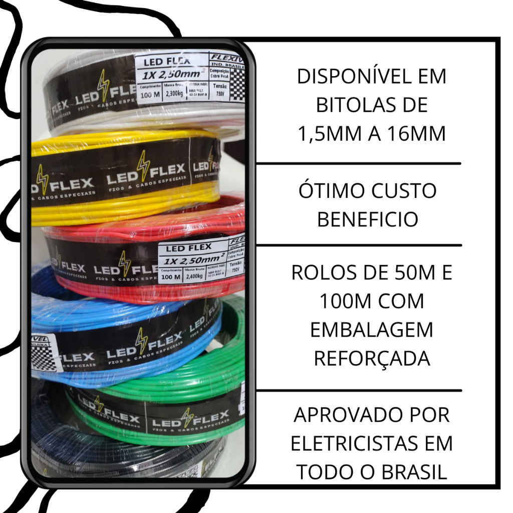 | Cabo 4mm 50m Flexível Antichamas Ledflex Original este produto | R$ 87,00 | — | 4.9/5 | 55 |