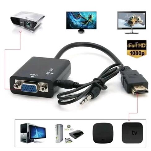 Este é um adaptador novo chip que pode converte o sinal digital HDMI para sinal analógico VGA com áudio digital. Ativar PC, DVD, PS3, Xbox360 e outros dispositivos de entrada HDMI macho para ser ligado até o monitor do computador, Projetor ou outra tela. - Excelente qualidade - Suporta Saída de alta definição: 720p, 1080p etc. - Utilize em placas mãe que tem saída para dois monitores, mas uma delas é em HDMI - Aplique a projetores, aproveite monitores grandes de CRT, televisões com entrada VGA, etc. - Plug and play - Não requer alimentação externa - Comprimento do cabo com entradas P2 é de 50cm - Condutor de cobre de alta dureza, com terminal, tornando-o resistente ao desgaste e evitando perda de sinal - Entrada HDMI 1.0. CARACTERÍSTICAS - Não necessita de fonte de energia - Plug & Play - Resolução até 720p / 1080i/ 1080p - Saída de áudio estéreo P2 (2.5) - Saída de Vídeo VGA - Entrada: HDMI ITENS INCLUSOS - HDMI para VGA Cabo adaptador - Áudio Cabo