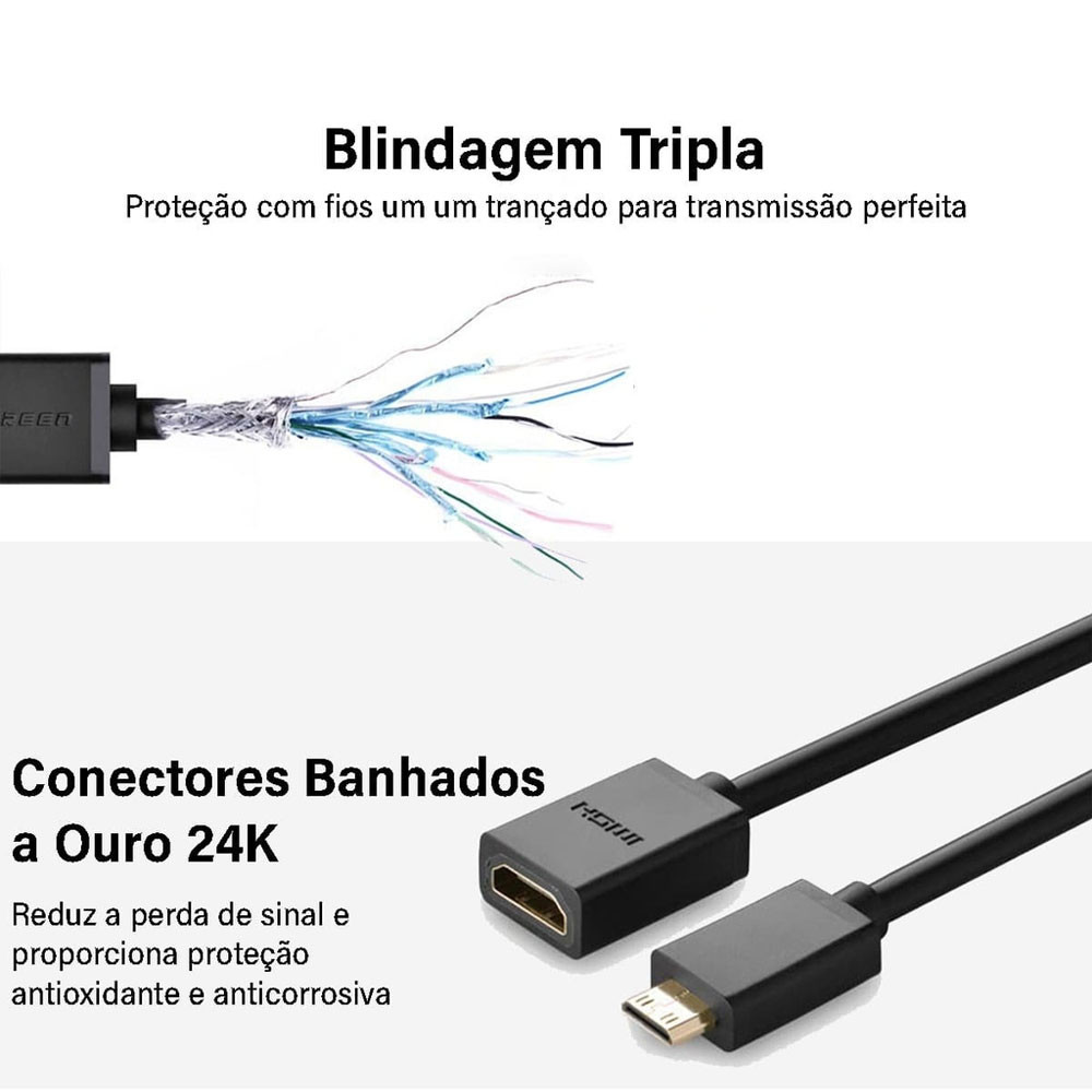 Cabo Adaptador Ugreen Mini Hdmi p/Hdmi Fêmea 20cm Preto