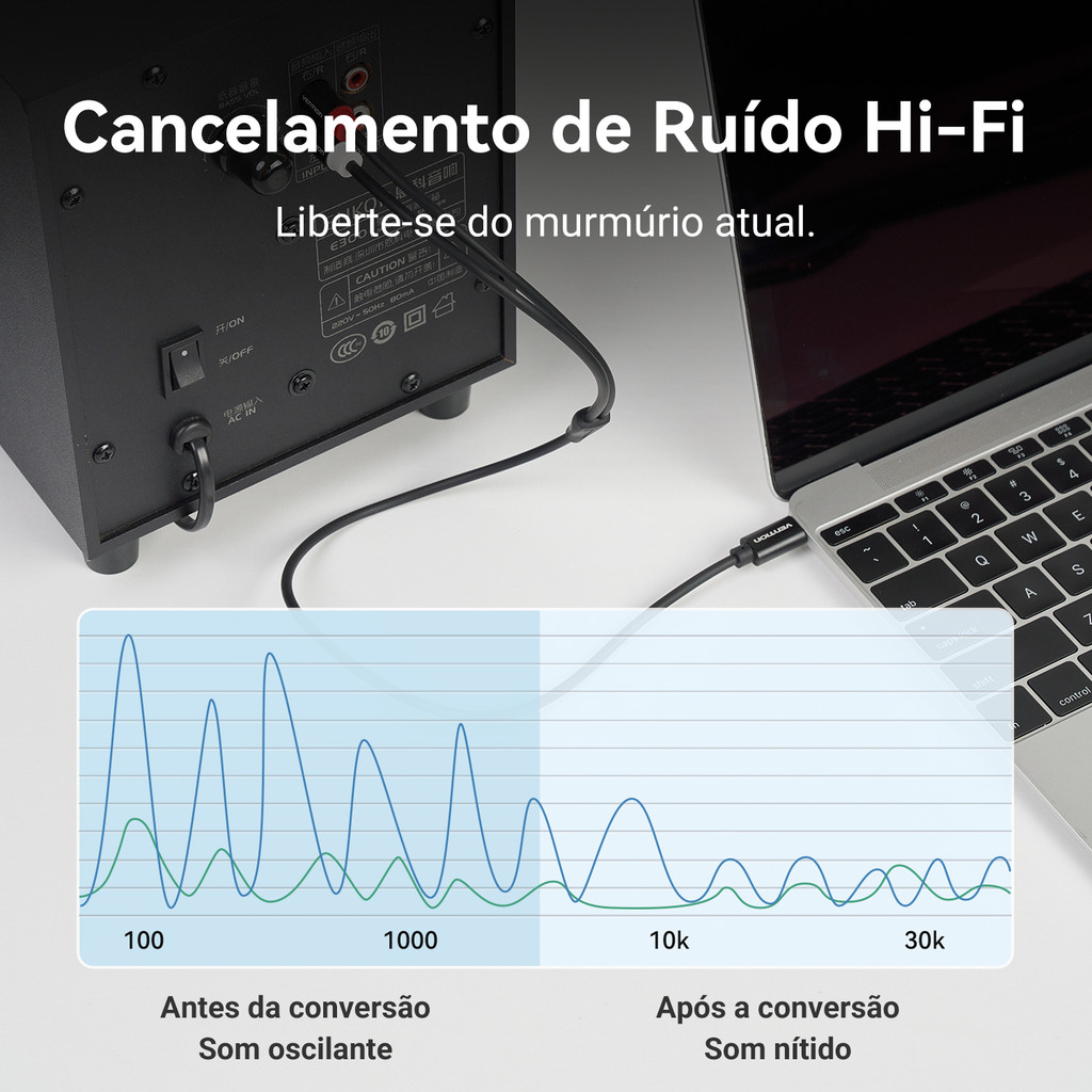 Cabo de Áudio Vention USB-C para 2 RCA - 1,5 Metros – Conexão Digital para Som Estéreo Conecte seu celular, tablet ou notebook com porta USB-C diretamente em caixas de som, receivers, amplificadores, home theater, soundbar ou mesas de som com entrada RCA. O cabo de áudio Vention USB-C para 2 RCA oferece som estéreo com ótima qualidade e muito mais praticidade para o seu setup de áudio. Destaques principais: Conector USB-C em um lado e 2 conectores RCA (vermelho e branco) no outro, para áudio estéreo esquerda e direita. Ideal para ligar dispositivos com USB-C em amplificadores, receivers, caixas de som ativas, mesas de som e sistemas de som residenciais. Conversão de áudio digital para analógico com boa fidelidade, proporcionando som limpo para músicas, filmes, jogos e apresentações. Cabo com construção reforçada, revestimento resistente e conectores bem acabados para maior durabilidade no uso diário. Plug and play: basta conectar e usar, sem necessidade de drivers ou configurações avançadas (apenas certifique-se de que o dispositivo USB-C suporta saída de áudio). Indicado para: Usuários que querem ligar o celular USB-C diretamente em som automotivo, home theater ou caixas amplificadas com entrada RCA. Quem utiliza notebook ou tablet com USB-C em sistemas de som profissionais ou residenciais. Quem busca um cabo prático para festas, eventos, igrejas, bares, studios ou uso doméstico. Compatibilidade: Dispositivos com porta USB-C que suportam saída de áudio (smartphones, tablets, notebooks selecionados). Qualquer equipamento de áudio com entrada RCA estéreo (L/R), como amplificadores, receivers, mesas de som, caixas amplificadas, soundbars, etc. Marca: Vention Comprimento do cabo: 1,5 Metros Interface: USB C para 2 RCA Revestimento externo: Jaqueta Elastica TPE
