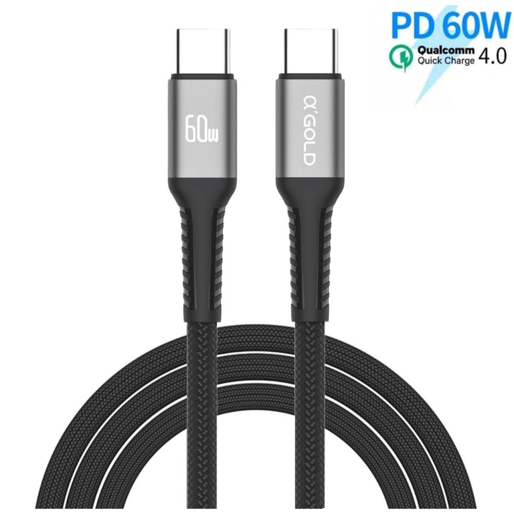 MARCA: A'GOLD COR: PRETO MODELO CB76: 1 Metro de Comprimento. CB69: 2 Metros de Comprimento Cabo Turbo 60W Alto desempenho com chips nos conectores USB-C nas duas pontas é ideal para recarregar, sincronizar e transferir dados entre aparelhos com USB-C. Ele pode ser usado com um carregador compatível para recarregar seus aparelhos na tomada e aproveitar a capacidade de recarga rápida. O cabo de dados suporta vários modos de carregamento rápido: 60W(10V6A) 40W(10V4A) 22,5W(4.5V5A). Pode ser usado para carga de notebook, Celulares Power Bank entre outros. Forte e durável Cabo com alta elasticidade, possui 3 camadas de proteção: Suporta Qc4.0, qc3.0 Taxa de transmissão: 480mbps