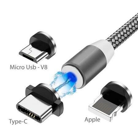 Cabo Carregador Magnético 3 Em 1 Para IPhone Android Tipo C