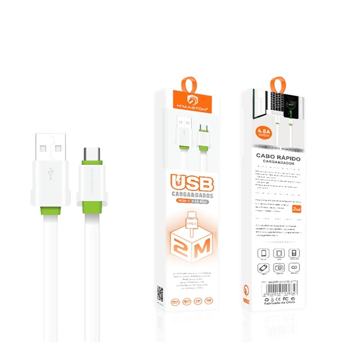Cabo Carregador Turbo Ultra Rápido 4.8A Resistente 2 Metros Android e Iphoe IOS Excelente Qualidade
