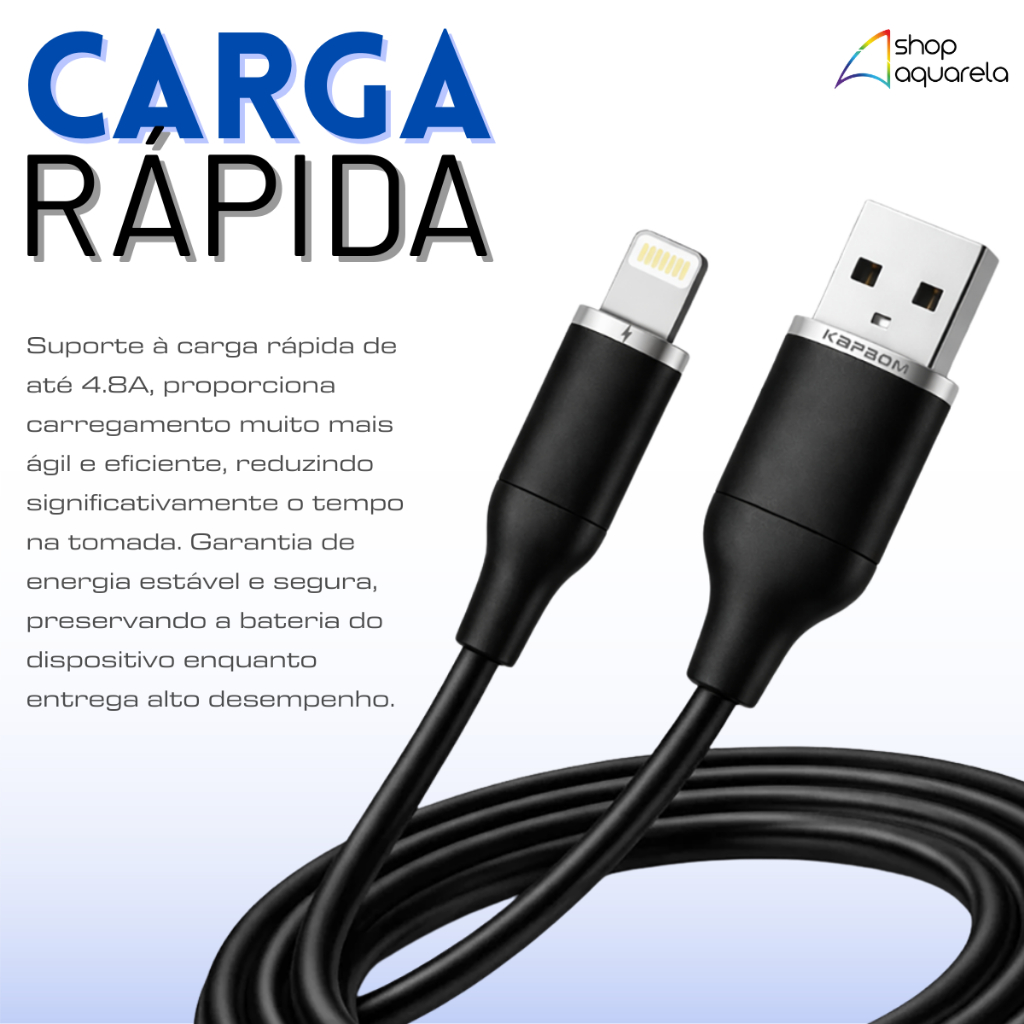 Cabo Carregador USB para Lightning Carga Rápida 4.8A Reforçado Kapbom