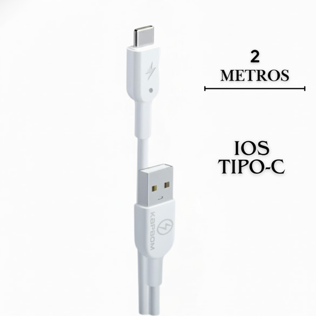 🔌 Cabo de Carregamento Kapbom KAP-2M-5G – 2m, Reforçado e Super Rápido O Cabo de Carregamento Kapbom KAP-2M-5G foi feito para quem quer durabilidade, velocidade e conforto no uso diário. Com 2 metros de comprimento, você ganha muito mais liberdade para usar o celular enquanto carrega, no sofá, na cama, no carro ou no trabalho. Disponível nas versões: - Tipo-C (USB-C) – ideal para celulares Android, tablets e outros dispositivos compatíveis - Lightning – ideal para iPhone, iPad e dispositivos Apple compatíveis ⚡ Destaques do Produto ✅ Cabo de 2 metros: mais conforto e mobilidade ✅ Carregamento rápido:* compatível com carregadores turbo (conforme adaptador) ✅ Revestimento reforçado: mais resistência a dobras e puxões ✅ Conectores firmes: encaixe estável, sem ficar “folgado” ✅ Ideal para uso diário: casa, escritório, carro, viagens e etc (A velocidade de carregamento depende do carregador e do aparelho.) 📋 Especificações Técnicas - Comprimento: 2 metros - Tipo de Conexão: - Versão 1: USB-A para Tipo-C - Versão 2: USB-A para Lightning - Funções: Carregamento e transferência de dados Compatibilidade: - Tipo-C: smartphones, tablets, fones e outros dispositivos com entrada USB-C - Lightning: iPhones, iPads e dispositivos Apple compatíveis 🛒 Ideal para quem procura: - Cabo mais longo que o padrão - Ter cabo extra para carro, trabalho ou viagem - Um cabo reforçado e com ótimo custo-benefício - Mais liberdade para utilizar aparelhos longe da tomada