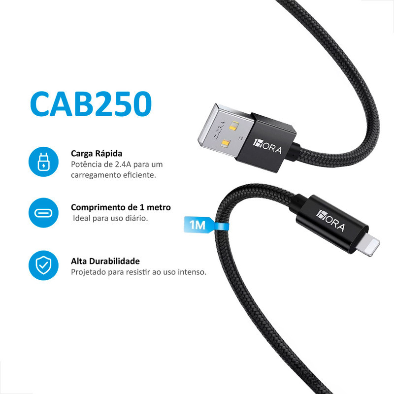 Cabo Carregamento/dados Usb Para Lightning Trançado 1m Preto