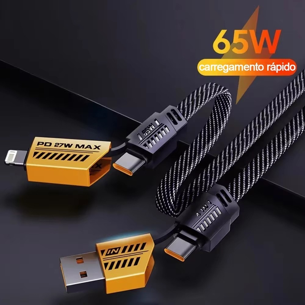Cabo Carregamento Rápido 4 em 1 TURBO 65W/27W Cabeça de Metal Revestimento de Nylon 1 metro