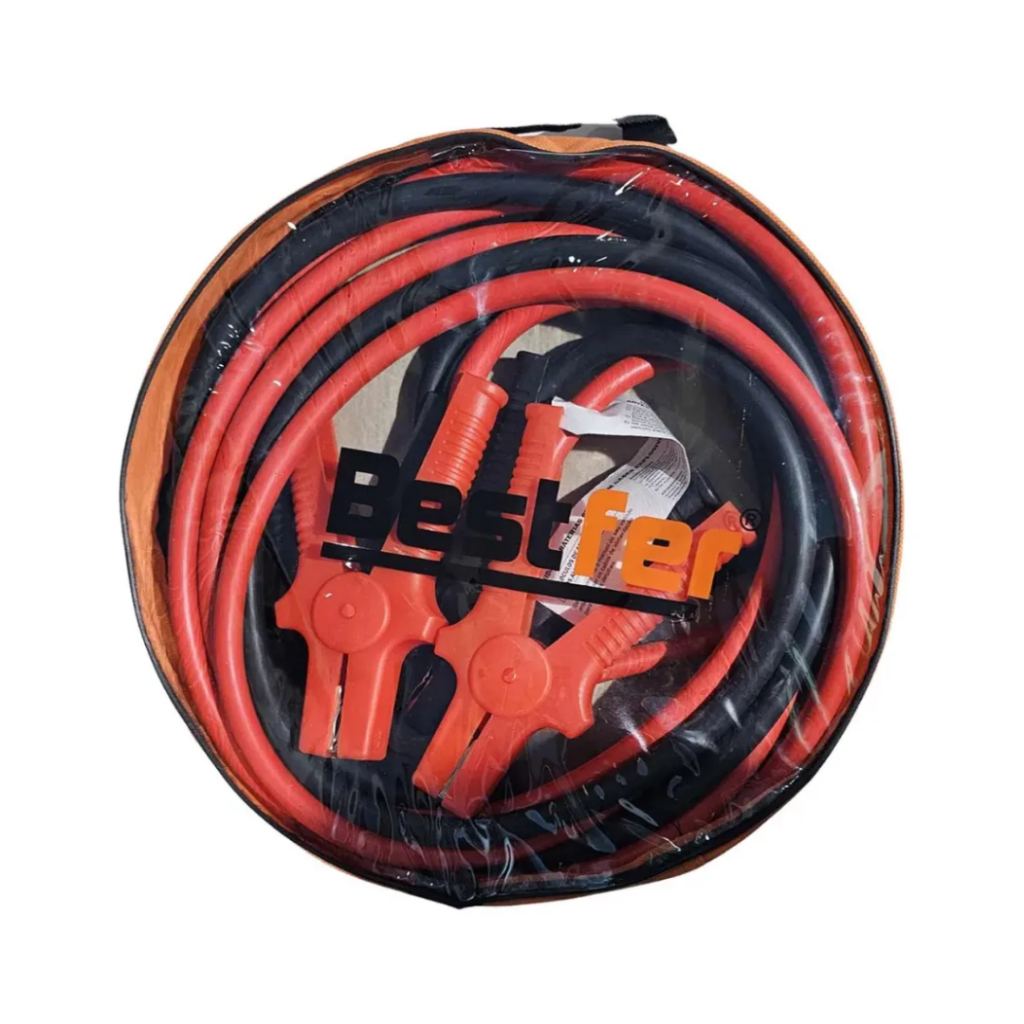 DISTRIBUÍDO POR CJAU FERRAMENTAS CABO PARA BATERIA 2000A PROFISSIONAL BFH1751 BESTFER O Cabo Chupeta Bateria de 2000A e 5 metros é a solução ideal para quem precisa de um produto robusto e confiável para dar partida em veículos. Com sua construção reforçada e grossa, este cabo é projetado para suportar altas correntes, tornando perfeito para carros, caminhões e caminhonetes. Compatível com sistemas de 12V e 24V, ele atende tanto a necessidades pessoais quanto profissionais, garantindo eficiência e segurança em situações de emergência. Seu comprimento de 5 metros proporciona flexibilidade e alcance, permitindo que você conecte facilmente a bateria de um veículo a outro, mesmo em espaços mais amplos. Com isso você pode ter a tranquilidade de saber que está preparado para qualquer imprevisto na estrada. Características: - 2 Garras Reforçadas Positivo (Vermelho) - 2 Garras Reforçadas Negativo (Preto) - 5m de cabo reforçado 14mm - Bolsa prática para transporte e armazenamento Na loja C-JAÚ, você encontra sempre as melhores ferramentas e acessórios para elevar o padrão do seu trabalho, com qualidade, tecnologia e confiança. E o melhor: tudo isso com atendimento especializado e envio rápido para todo o Brasil. Aproveite!