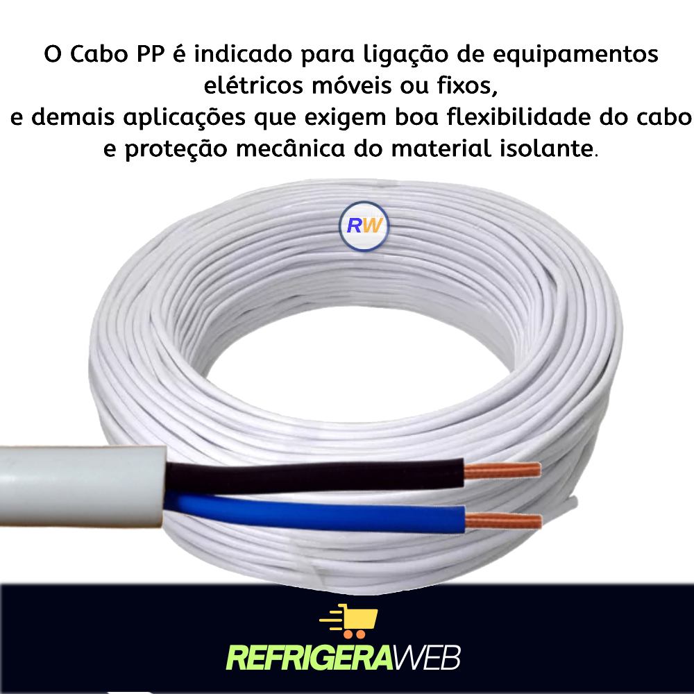 Cabo Comando Pp 2 Vias 1,5mm Rolo Branco ou preto Marca: Elity Quantidade condutor: 2 Vias Bitola do cabo (mm²): 1,5 Tipo de cabo: PP Comprimento do cabo: 5 Metros Cor do cabo: Branco ou preto Você sabe oque fazer para conferir se a quantidade de cabo que esta comprando esta correta? O Cabo PP é indicado para ligação de equipamentos elétricos móveis ou fixos, e demais aplicações que exigem boa flexibilidade do cabo e proteção mecânica do material isolante. Cabos PP são muito utilizados para aplicações que exigem grande variações térmicas, trepidação, instabilidade mecânica, agitação e outros tipos de desgastes, além de possuir flexibilidade ideal em aplicações como cobrir resistências elétricas diversas. Esses itens são também termicamente resistentes, suportando temperaturas elevadas. Além disso, eles são maleáveis e possuem um acabamento sem igual.