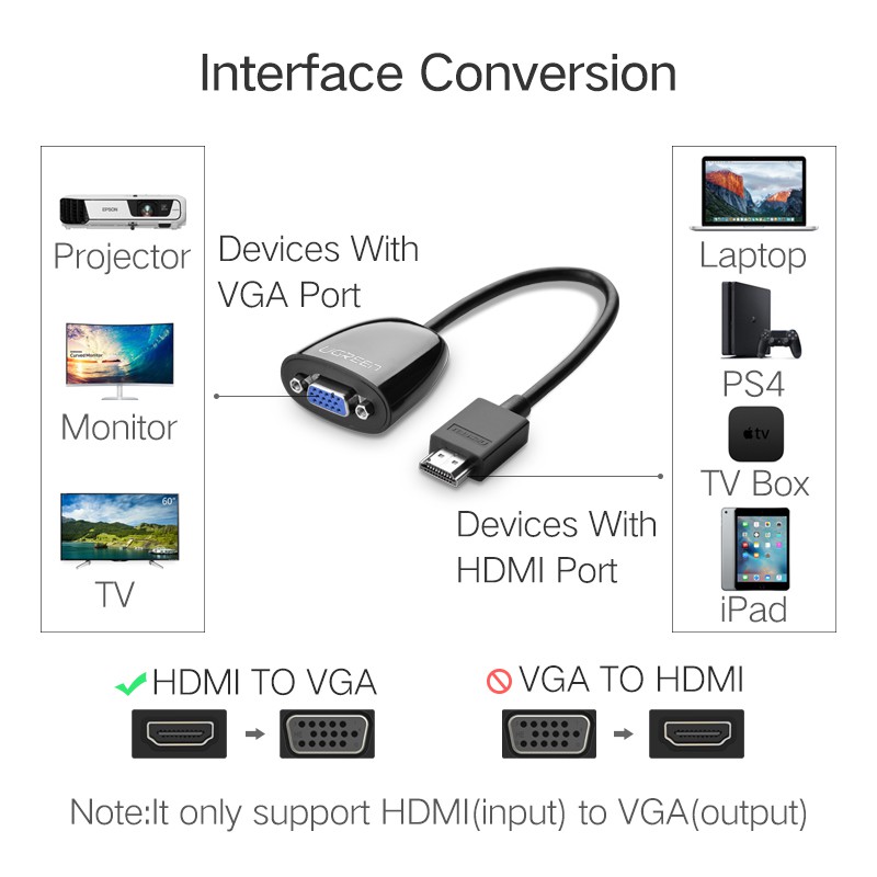 Cabo Conversor Adaptador Hdmi Para Vga Ugreen