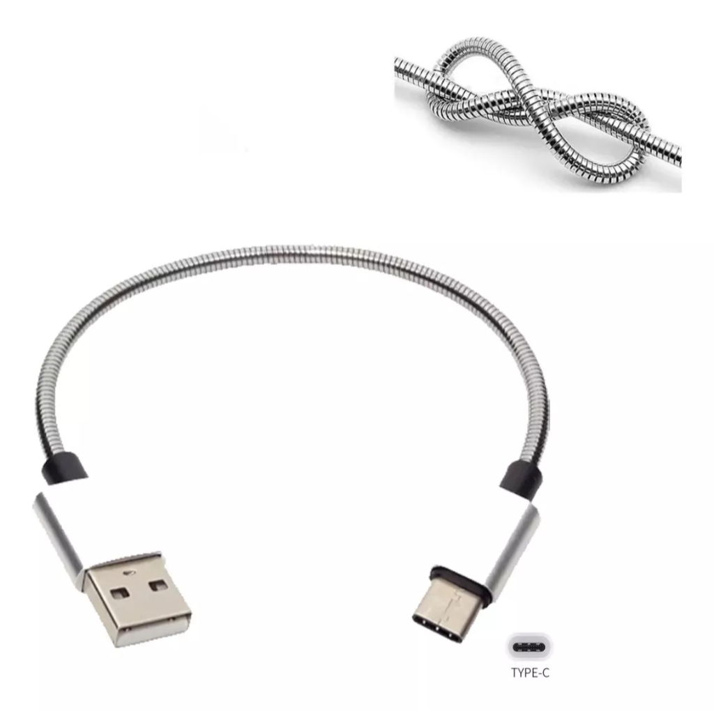 Cabo Curto 20cm Blindado Metal Micro Usb / iPhone / Type C para Celular Tablet