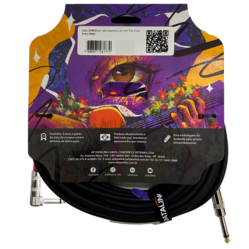 Os cabos GARAGE têm excelente custo-benefício e são utilizados para interligar instrumentos musicais como guitarras, violões, baixos, teclados e entre outros, ao amplificador ou outros equipamentos.Matérias primas de alta qualidade resultando em timbres mais nítidos.Blindagem com trança e semi condutora reduz interferências externas.Alta flexibilidade.Plugs de alta qualidade importados diretamente pela Datalink.