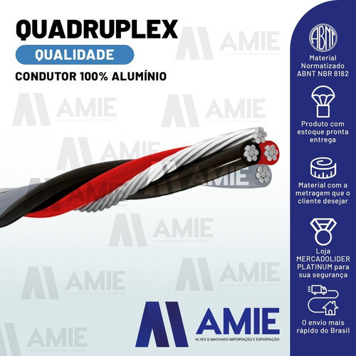 Cabo De Alumínio; Quadruplex 10mm - Rolo Com 50 Metros