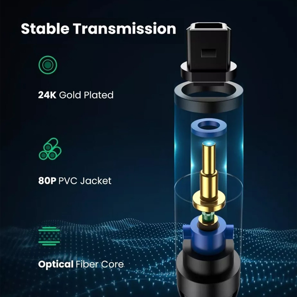 Cabo de Áudio Ugreen Toslink Óptico Macho/Macho 2M Preto