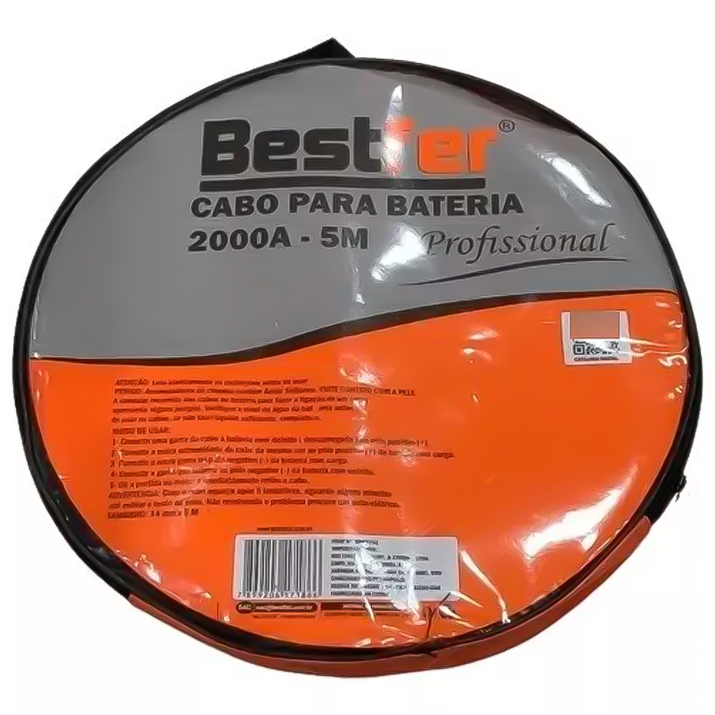 COMERCIAL VIPASA DISTRIBUIDORA. Cabo De Carga Automotivo Bateria 2000A Chupeta Caminhão Carro 5 Metros Cabo Chupeta Bateria 2000a 5 Metros Reforçado Grosso 12v 24v CABO AUTOMOTIVO P/ BATERIA 5M 2000AMP (BFH1751) / BESTFER Descrição CABO DE BATERIA PARA PARTIDA DE CAMINHÕES E AUTOMÓVEIS BESTFER - COMPRE COM TOTAL GARANTIA E SEGURANÇA! - ENVIO RÁPIDO, IMEDIATO E COM NOTA FISCAL! --------------------------------------------------------------------------------------------------- - CHUPETA AUXILIAR DE PARTIDA 2000AMP Informações do produto: Capacidade: 2000a Tamanho aproximado do cabo: 5 Metros Tipo de produto: cabo para bateria na embalagem (bolsa) Cor: vermelho e preto Composição: plástico e metal Marca: BestFer Modelo: BFH1751 Linha: Profissional AMP Máxima: 2000 amp. Tamanho do Cabo: 5 m Excelente opção quando existe descarga de energia na bateria de veículo, podendo realizar a conexão através do cabo de chupeta a outra fonte de energia e realizar a transferência de carga. - Especificações :: Marca: Bestfer :: Referência: BFH1751 :: Código de Barras: 7899206171866 :: Sem risco de choques: material isolado :: Comprimento: 5 m :: Espessura do fio: 14 mm :: Possui excelente condutibilidade :: Capacidade: 2000 amperes :: Garras no modelo jacaré - Itens inclusos :: 1 Cabo chupeta para bateria 2000a - 5m :: 1 Bolsa para transporte. COMERCIAL VIPASA DISTRIBUIDORA.
