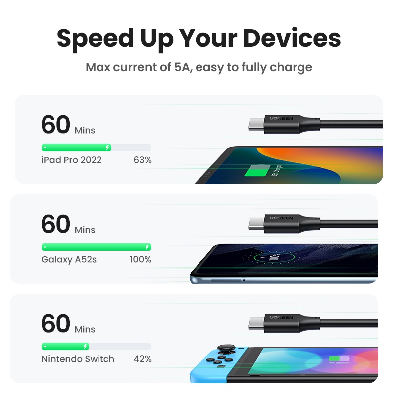 Cabo De Carregamento Rápido UGREEN 100W USB C Para PD 5A 100W Tipo MacBook iPad Pro