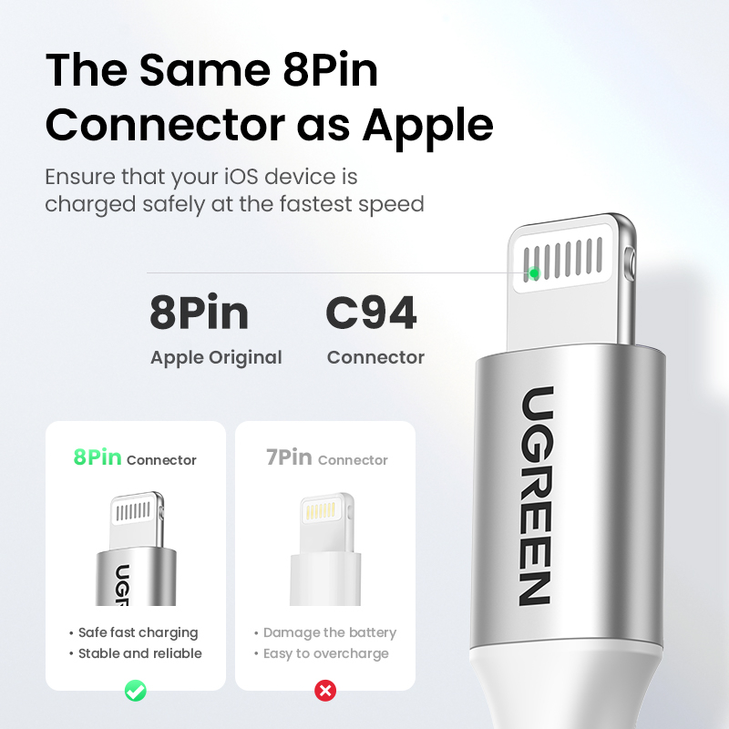 Cabo De Carregamento UGREEN MFi 20W USB Tipo C Para O iPhone 14 Pro Max 13 12 Plus Mini PD Rápido De Dados iPad 1m 2m