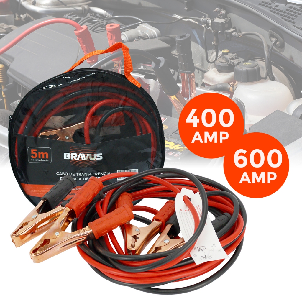 A Bravus é referência no mercado quando o assunto são peças e acessórios automotivos. Prezando pela qualidade e acabamentos, consequência da tecnologia de ponta investida para melhor atender e aproximar nossos clientes. Projetado para atender as demandas de amperagem de todos os veículos, este cabo garante uma transmissão de energia eficiente e segura, essencial para emergências na estrada. Com seu design robusto e materiais de alta qualidade, é a solução ideal para recarregar baterias de caminhões, carros, motos e mantê-los em operação. Ficha Técnica: • Corrente Máxima Disponível: 400a e 600a (Escolha nas variações); • Comprimento: 5 Metros; • Isolamento: PVC resistente a altas temperaturas e abrasão; • Conectores: Garras tipo jacaré de aço revestidas com cobre; • Bitola: 10mm²; • Revestimento cobreado; ** ACOMPANHA BOLSA PARA ARMAZENAMENTO ** Benefícios: ✅Durabilidade: Robusto para uso frequente e em condições adversas. ✅Segurança Garantida: Isolamento duplo que previne curtos-circuitos e superaquecimento. ✅Fácil Armazenamento: Acompanha bolsa prática para armazenamento e transporte. ✅Versatilidade: Pode ser utilizado TODOS os veículos como carros, caminhões, ônibus e motos. ○○○○○○○○○○○○○○○○○○○○○○○○○○○○○○○○○○○○○○○○○○○○○○○○ A Ninja Parts, fundada em 2016 em Curitiba-PR, é um e-commerce referência nacional em peças e acessórios automotivos. Oferecemos as melhores marcas com qualidade e envio rápido, priorizando a satisfação do cliente e um excelente atendimento. Garantia • 90 dias a partir da data da compra; • Garantia válida apenas para defeitos de fábrica. Não é coberto mau uso, má instalação, quebra ou adaptações que alterem características originais do produto; Trocas e Devoluções • Importante que todos os itens sejam enviados nas embalagens originais de forma segura; • Caso o produto retorne danificado, os custos ficarão sob responsabilidade do cliente; Recomendação • A instalação seve ser realizada por um profissional de sua confiança; Compra Garantida • Transação Segura; • Estorno automático em caso de imprevistos; • Acompanha nota fiscal; • Produtos a pronta entrega.