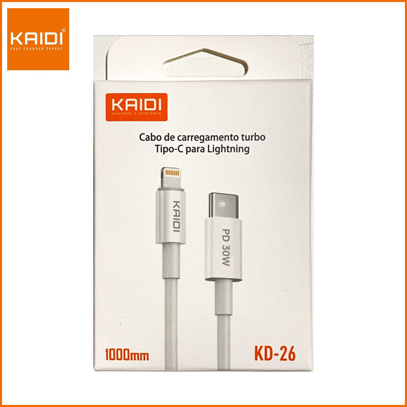 Cabo de Dados e Carregamento Turbo Tipo-C para Lighting KAIDI KD-26 Potência Máxima: 30w