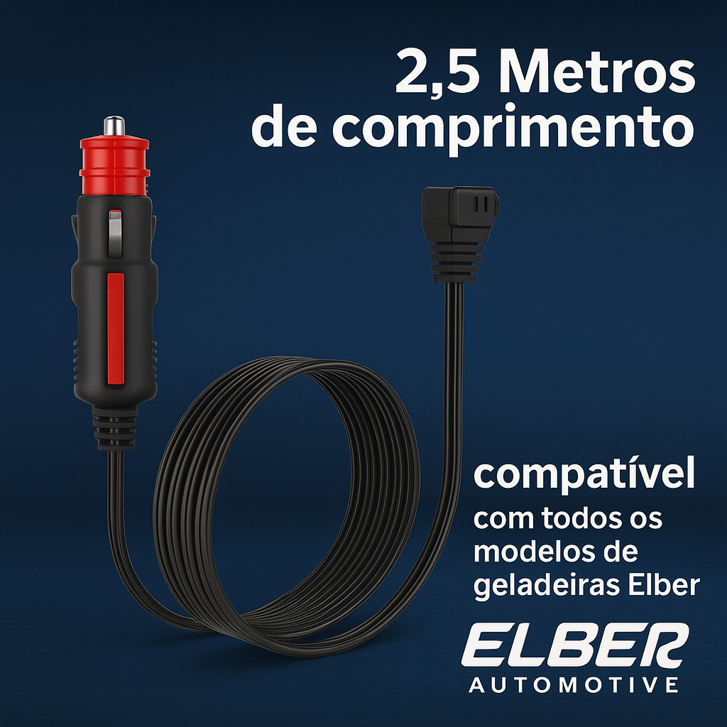 CABO PLUG DE ALIMENTAÇÃO ELBER 12/24V TB41 – EXCLUSIVO PARA GELADEIRAS PORTÁTEIS ELBER! Garanta a energia constante e segura que sua geladeira portátil Elber merece com o Cabo Plug de Alimentação Elber 12/24V TB41. Desenvolvido e testado especificamente para as geladeiras portáteis da marca Elber, este cabo é essencial para manter seus alimentos e bebidas sempre refrigerados durante todas as suas viagens e aventuras. Compatível com voltagens de 12V e 24V, este cabo oferece a conexão direta e ideal entre sua geladeira Elber e a fonte de energia do seu veículo. Escolha a qualidade e a segurança da Elber, sinônimo de confiabilidade no mercado de acessórios automotivos. DESTAQUES E BENEFÍCIOS PRINCIPAIS COMPATIBILIDADE EXCLUSIVA ELBER: Projetado e otimizado para funcionar perfeitamente apenas com geladeiras portáteis da marca Elber que utilizam conexão 12V/24V. ENERGIA ESTÁVEL E SEGURA: Fornece alimentação confiável e contínua, protegendo sua geladeira portátil Elber e garantindo a conservação eficiente dos seus itens. QUALIDADE RECONHECIDA: Fabricado com os padrões de durabilidade e resistência da Elber, assegurando um funcionamento preciso e duradouro. PRATICIDADE: Conexão simples e direta entre sua geladeira Elber e a tomada veicular, ideal para carros, caminhões, motorhomes e outros veículos. FICHA TÉCNICA - Marca: Elber - Voltagem: 12/24V - Modelos Compatíveis: Geladeiras portáteis automotivas Elber - Conteúdo da Embalagem: 1 Cabo Plug de Alimentação 12/24V TB41 Elber - Comprimento: 2,5 Metros GARANTIA Este produto possui 1 ano de garantia (12 meses) contra defeitos de fabricação, pelo fornecedor, contados a partir da data de recebimento do item pelo comprador. Esta garantia assegura a qualidade e o bom funcionamento do cabo, cobrindo eventuais falhas decorrentes do processo de fabricação. A garantia não cobre danos causados por uso inadequado, mau manuseio, quedas, exposição a condições extremas, instalação incorreta ou desgaste natural. Para acionar a garantia, é indispensável apresentar a nota fiscal de compra.