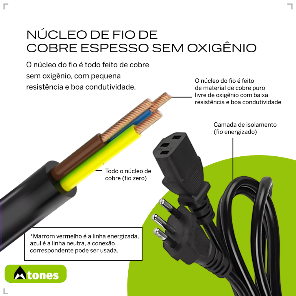 Cabo de Força Energia CPU PC Fonte Computador Monitor 3 Pinos Tripolar ENVIO IMEDIATO COM NOTA FISCAL O cabo de força ATX de 1,8 metros segue o novo padrão de tomadas brasileiras, com plugue de 3 pinos. Possui proteção de plástico nos pinos para evitar choques acidentais por contato. • Especificações: - Novo padrão brasileiro plugue 3 pinos - Plugue IEC fêmea - Comprimento do cabo: 1,8 metros - Proteção anti-choques acidentais nos pinos - Cor: preta * Compatível com Computador (PC / Desktop); * Compatível com Monitores; * Compatível com alguns modelos de impressoras. * Máquinas de Solda a vapor