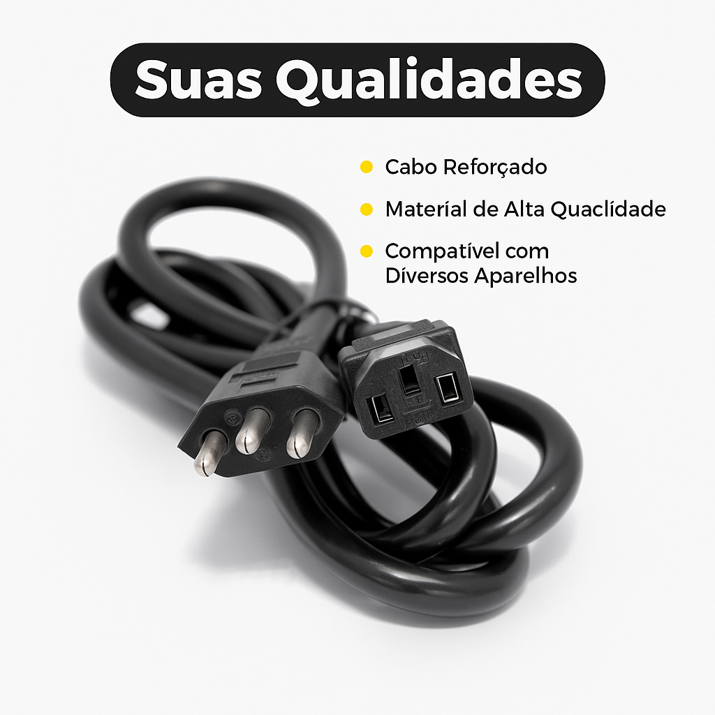 Cabo de Força para Panela de Arroz Elétrica Mondial 3 Pinos Bivolt Removível Universal Compatível