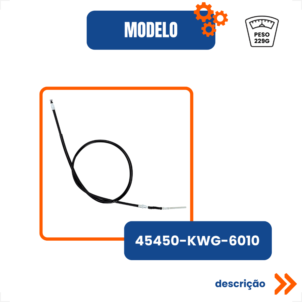 🚚 ENVIO AGILIZADO APÓS A CONFIRMAÇÃO DE PAGAMENTO 🔒 COMPRA 100% SEGURA 🤝 NOSSO COMPROMISSO É OFERECER O MELHOR ATENDIMENTO AOS NOSSOS CLIENTES. 🏍️ Cabo de Freio Dianteiro Honda CG 125 Fan 2009 a 2013 – Modelo Original Se o freio da sua moto está com resposta lenta, manete duro ou curso excessivo, o problema pode estar no cabo de freio desgastado. Um cabo comprometido reduz a eficiência da frenagem e coloca sua segurança em risco, principalmente em situações de emergência. O Cabo de Freio Dianteiro AOMOTO é a solução ideal para restaurar a firmeza, precisão e segurança da frenagem da sua CG 125 Fan. 📝 Descrição do Produto Fabricado com aço reforçado de alta resistência e revestimento protetor, o cabo garante transmissão eficiente da força aplicada na manete até o sistema de freio. Produzido no padrão original Honda, proporciona encaixe perfeito e instalação direta, sem necessidade de adaptações. 📋 Ficha Técnica: 🛠️ Marca: AOMOTO; 🔢 Modelo: 45450-KWG-6010; 🧱 Material: Aço reforçado, polímeros de alta resistência e acabamento em alumínio; 🏍️ Aplicação: Sistema de freio dianteiro (freio a tambor). 📅 Anos Compatíveis: Honda CG 125 Fan – 2009 | 2010 | 2011 | 2012 | 2013. 📦 Itens Inclusos: 1x 🔗 Cabo de Freio Dianteiro. 🌟 Diferenciais: ✔️ Frenagem Mais Precisa; ✔️ Alta Resistência ao Desgaste; ✔️ Encaixe Padrão Original; ✔️ Funcionamento Suave e Seguro; ✔️ Ideal para reposição preventiva ou corretiva. 🖼️ Imagens meramente ilustrativas. 🔑 Palavras-Chaves: Honda | CG125 | Fan125 | Cabo Freio | Freio Dianteiro | Reposição | Peças Moto | Sistema Frenagem | 2009 | 2010 | 2011 | 2012 | 2013 | Aomoto | Resistente