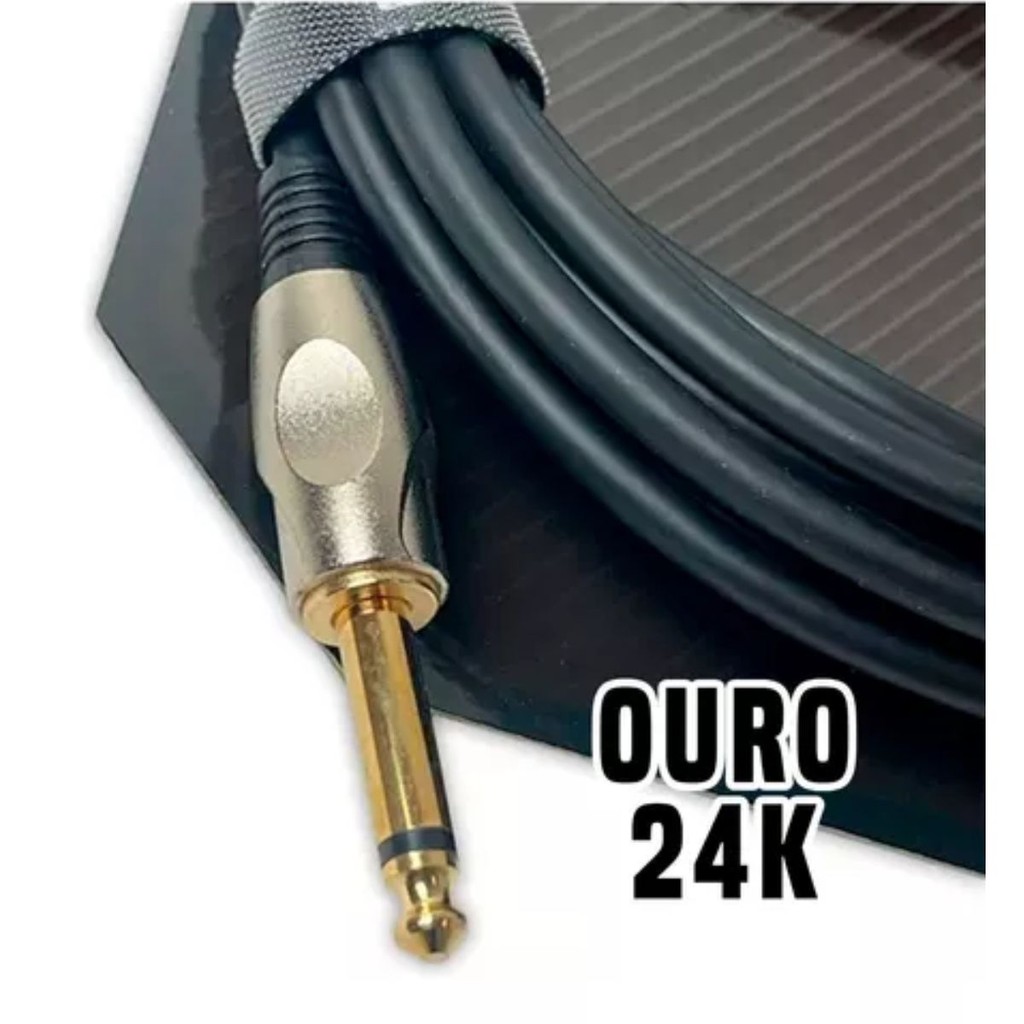 Cabo de áudio profissional P10/P10 mono de 5 metros com conectores banhados a ouro 24K. + 01 Afinador ClipOs cabos da linha Pro Series criam uma conexão confiável de alta qualidade para um áudio ideal. Além do Uso de Materiais que eliminam ruídos externos.Cabos de qualidade profissional, permitindo que o som de um instrumento ou voz flua de forma clara, natural e realistaIDEAL PARA:Guitarra;Violão;Baixo;Equipamentos Musicais;Gravação de estúdio;Som ao vivo;Lives;E todo equipamento com conector P10 (seja entrada ou saída).ESPECIFICAÇÕES TÉCNICAS:Condutores: CobreO.D: 6mmBlindagem: Cobre (reduz interferência eletromagnética)Possui fios de algodão ao longo de todo o cabo para maior durabilidade e maleabilidade.Comprimento: 5 metros