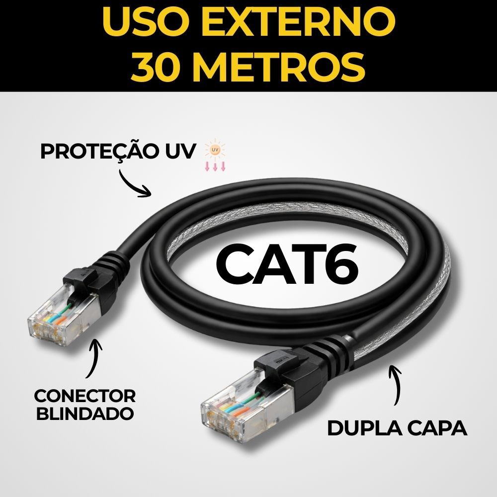| Cabo de Rede CAT6 30 Metros Blindado Externo Dupla Capa este produto | R$ 172,96 | 8% | 5.0/5 | 1 |