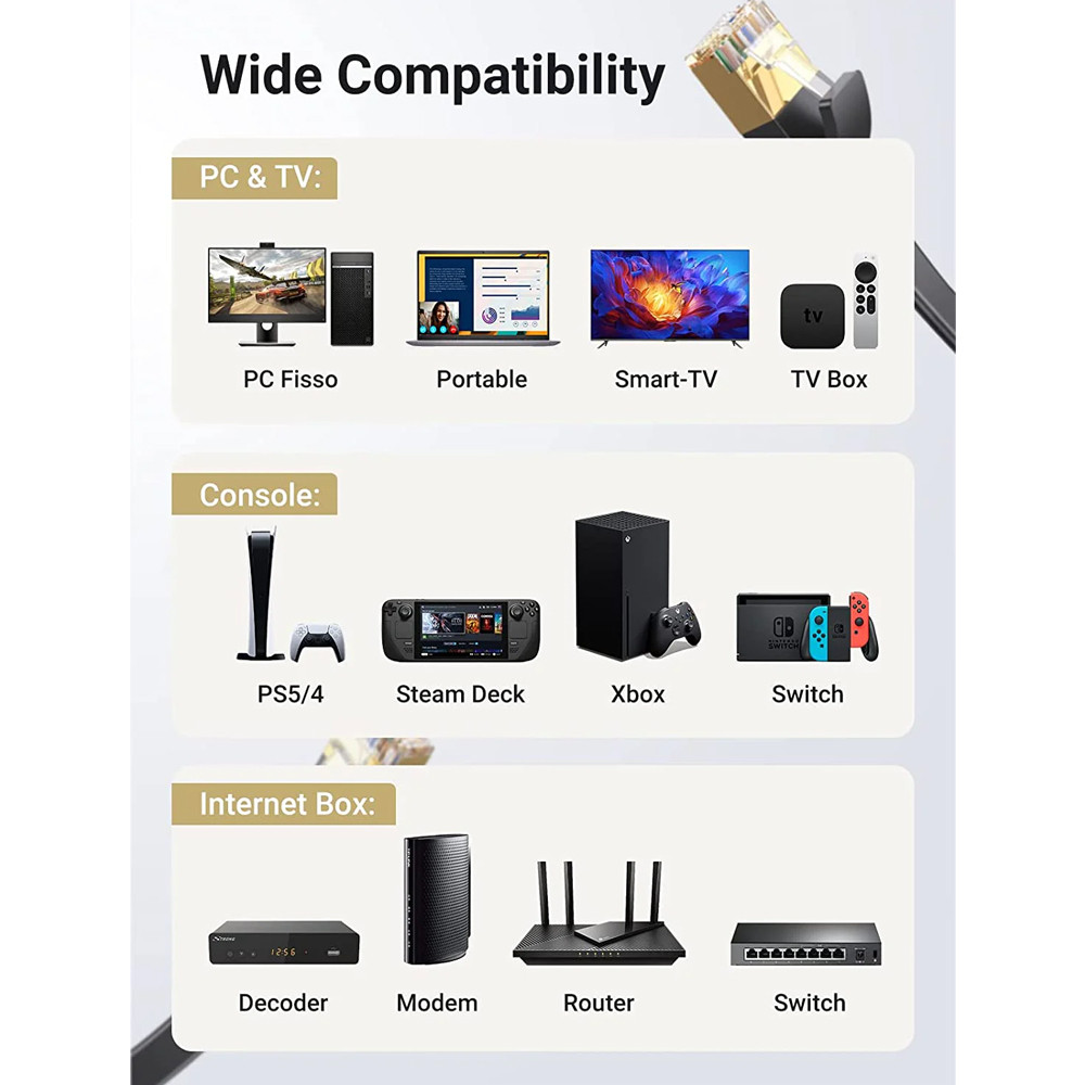 Cabo de Rede Ugreen Cat 7 U/Ftp Cabo Lan Rj45 1 Metro Design Plano Internet Velocidade 10Gbps Ideal para jogos PS5 PS4 PS3 Xbox PC Laptop Modem Roteador Computador 1. Design atraente: O cabo de rede UGREEN Cat 7 U/FTP vem em um incrível design fino com a carcaça de nylon combinando cor e estilo ao mesmo tempo. Oferece resistência aos impactos, torções e flexões enquanto o material externo suave garante conforto na hora da instalação; 2. Qualidade Superior: O cabo UGREEN Cat 7 U/FTP acompanha um conector em liga de cobre maciço oferecendo maior resistência e estabilidade para maior durabilidade. Além disso, has um blindagem RJ45 composta de cobre folheado a ouro 24K que proporciona uma transferência mais rápida, confiável e estável de dados; 3. Velocidade Até 10Gbps: O cabo UGREEN Cat 7 U/FTP apresenta um padrão de cat7 de última geração que permite a transferência de dados a velocidades de até 10Gbps através da conexão RJ45; 4. Instalação Fácil: O cabo UGREEN Cat 7 U/FTP possui um tamanho de 1m de comprimento prático e suficiente para conectar dois dispositivos impedindo a necessidade de dependência em um hub ou outros dispositivos de expansão; 5. Praticidade em Ambientes Internos: O cabo UGREEN Cat 7 U/FTP tem excelente aproveitamento quando aplicado em ambientes internos tendo boa flexibilidade e sua carcaça em nylon trançado que evita embaraçar o cabo ultrafino que o torna um dos melhores cabos de rede para uso interno. Garantia: 90 dias