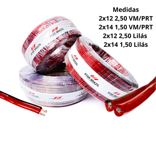 | cabo de som automotivo paralelo Bicolor 2 vias 2x12mm 2,5mm e 2x14... este produto | R$ 57,50 | 36% | 4.9/5 | 56 |