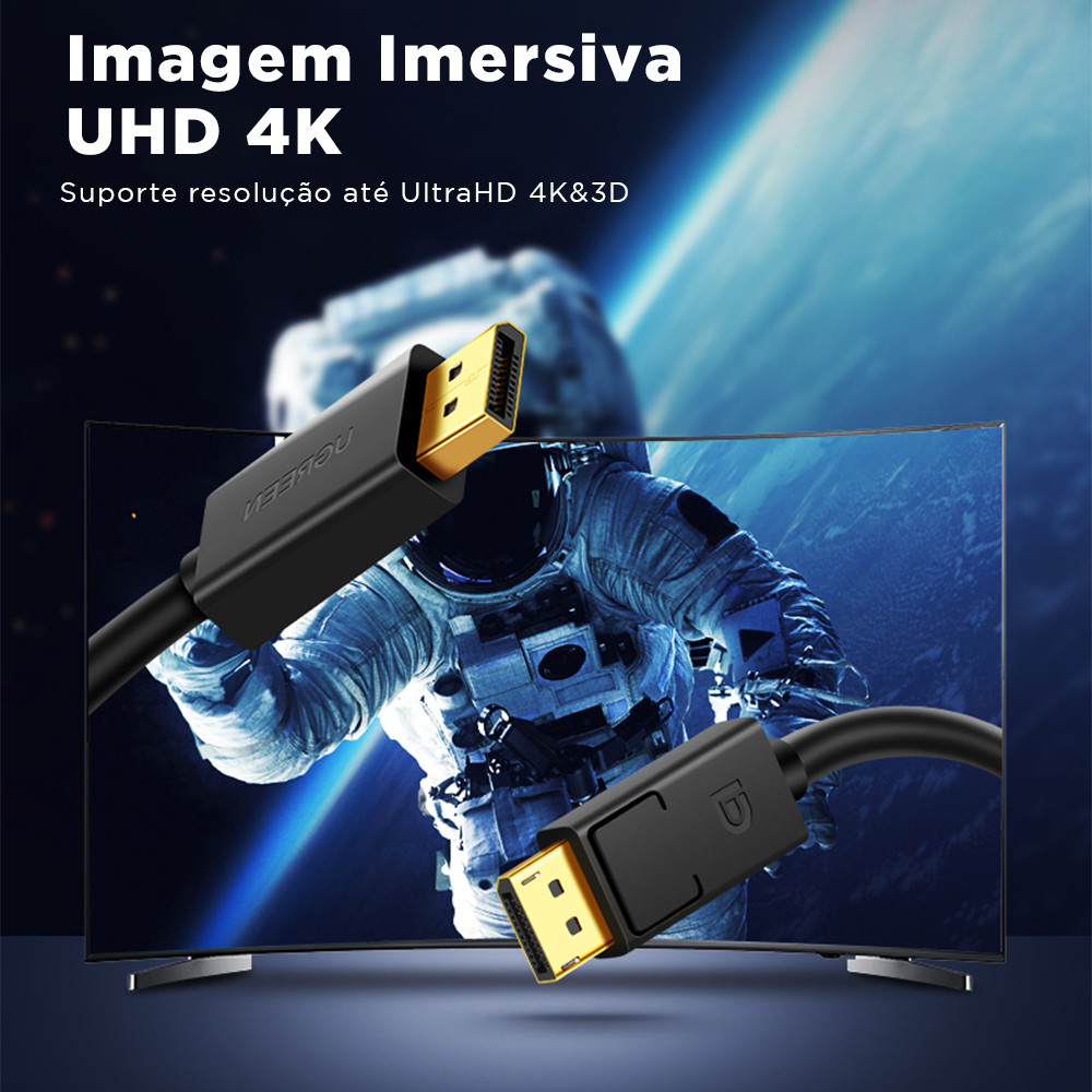 Cabo Displayport 1.2 Ugreen Macho Suporta 3D 4k/60Hz 1.5 M