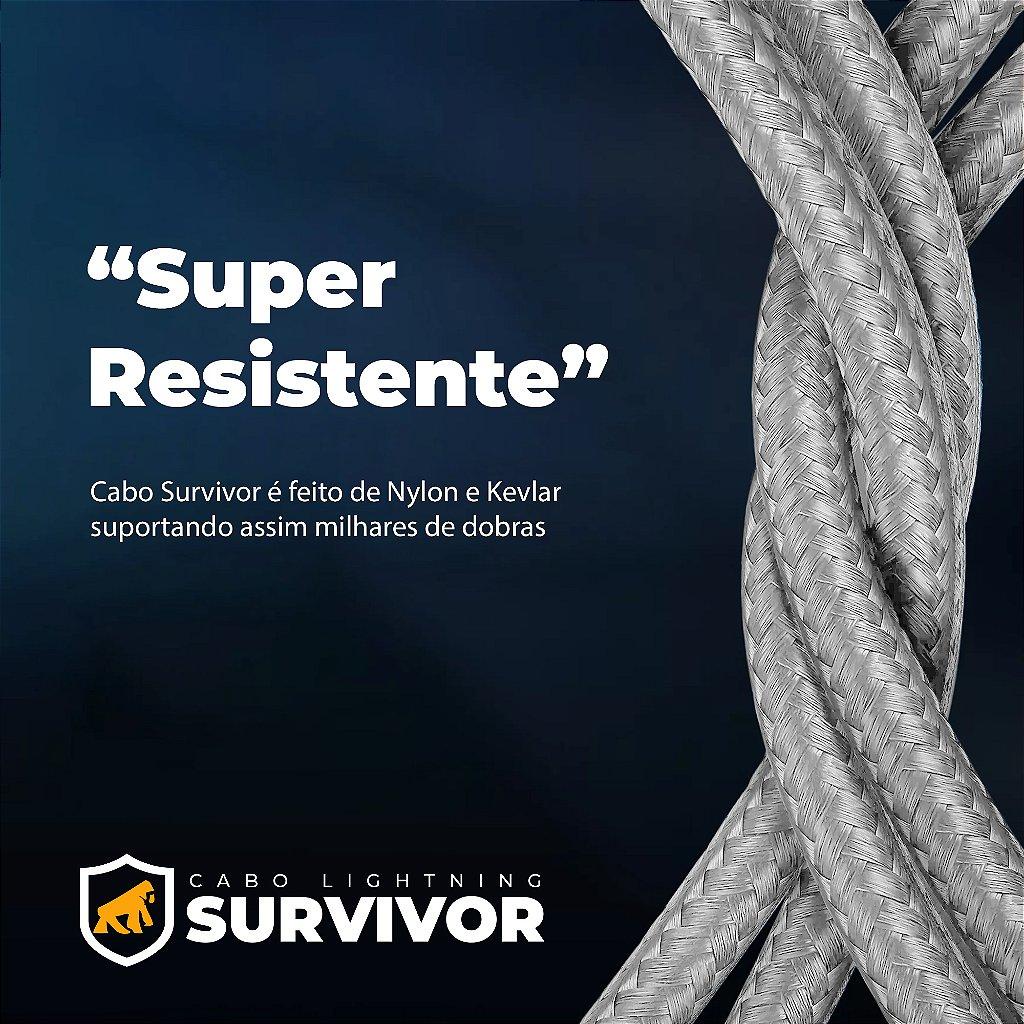 O Cabo Survivor, da Gshield, é um dos mais modernos do mercado. Fabricado com material durável, cabeça metálica e com fio revestido em malha, o acessório garante o carregamento rápido do seu aparelho e uma transferência de dados de forma segura e eficaz. ATENÇÃO: Na hora de usar e guardar o cabo deve-se tomar cuidado para NÃO DOBRAR as pontas do acessório. Ainda que ele seja reforçado, o ato de dobrá-lo com frequência danifica o interior do objeto! ESPECIFICAÇÕES - Marca: Gshield - Material: Nylon Ballistico - Tamanho: 1,5m - Cor: Branco - Carregamento: Qualcomm 3.0 3A - Corrente: 3A - Tensão: 21,5V - Potência: 64,5W COMPATIBILIDADE Compatível com aparelhos com entrada Lightning