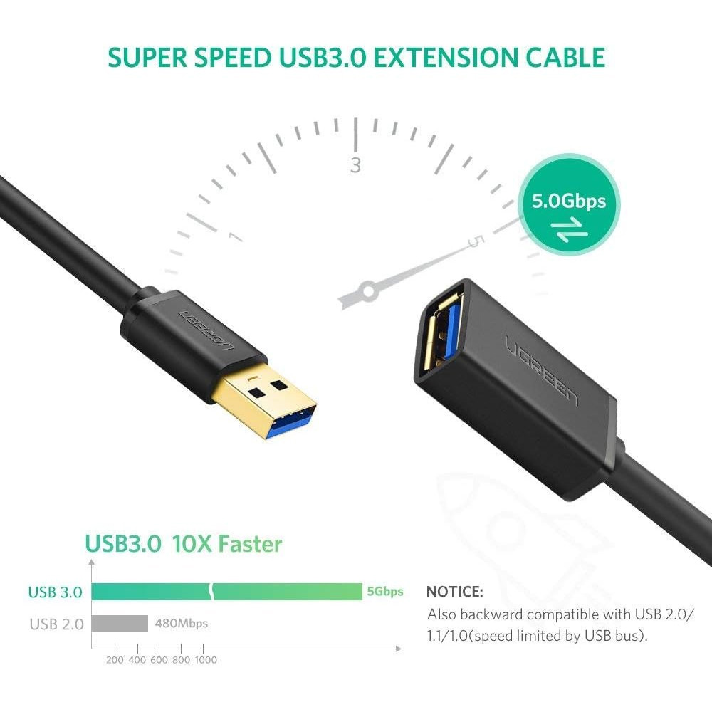 Cabo Extensão Ugreen Usb 3.0 pra Usb A Fêmea 5Gbps 0.5 Metro
