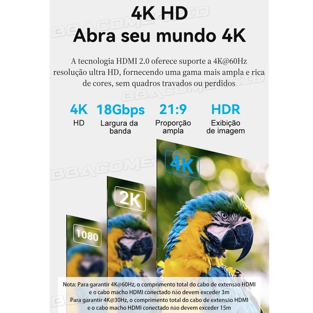 Cabo Extensor Hdmi X Hdmi 2.0 4k 60fps hdr Full Hd 2 Metros