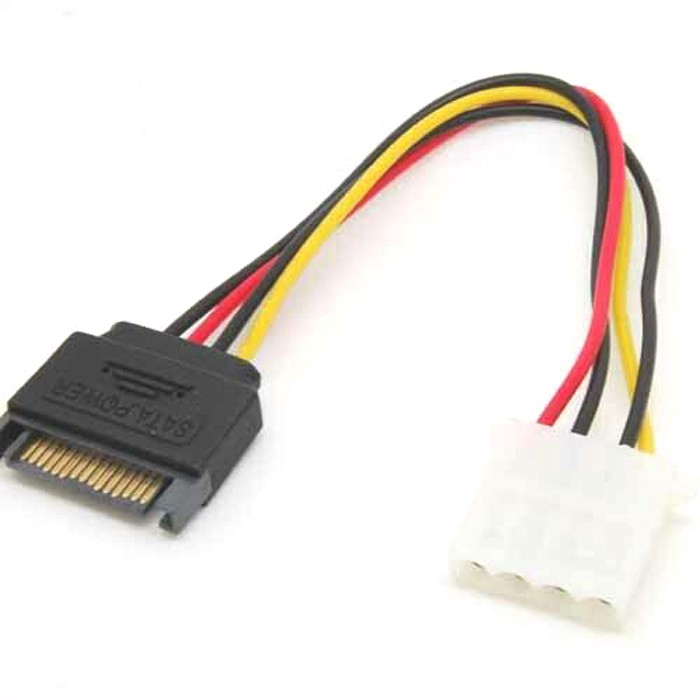 O cabo de alimentação SATA 15 Pin para 4 Pin para este cabo SATA 15 Pin para 4 pinos muda de um conector de energia SATA para um conector molex padrão de 4 pinos. Este cabo Y-Cable SATA 15 possui uma porta feminina SATA de 15 pinos (porta de entrada) e duas portas de energia Molex de 4 pinos, duas em cada lado do cabo de 5 polegadas. Muito difícil de encontrar cabo de alimentação SATA que converte a saída de fonte de alimentação de novo estilo de 15 pinos SATA para molex de 4 pinos para conexão a unidades ópticas legadas. Discos rígidos de 5,25 polegadas CD-ROM/DVD-RW etc. e discos rígidos de 3,5 polegadas) Pacote Incluído no Pacote: 1 Pçs cabo.